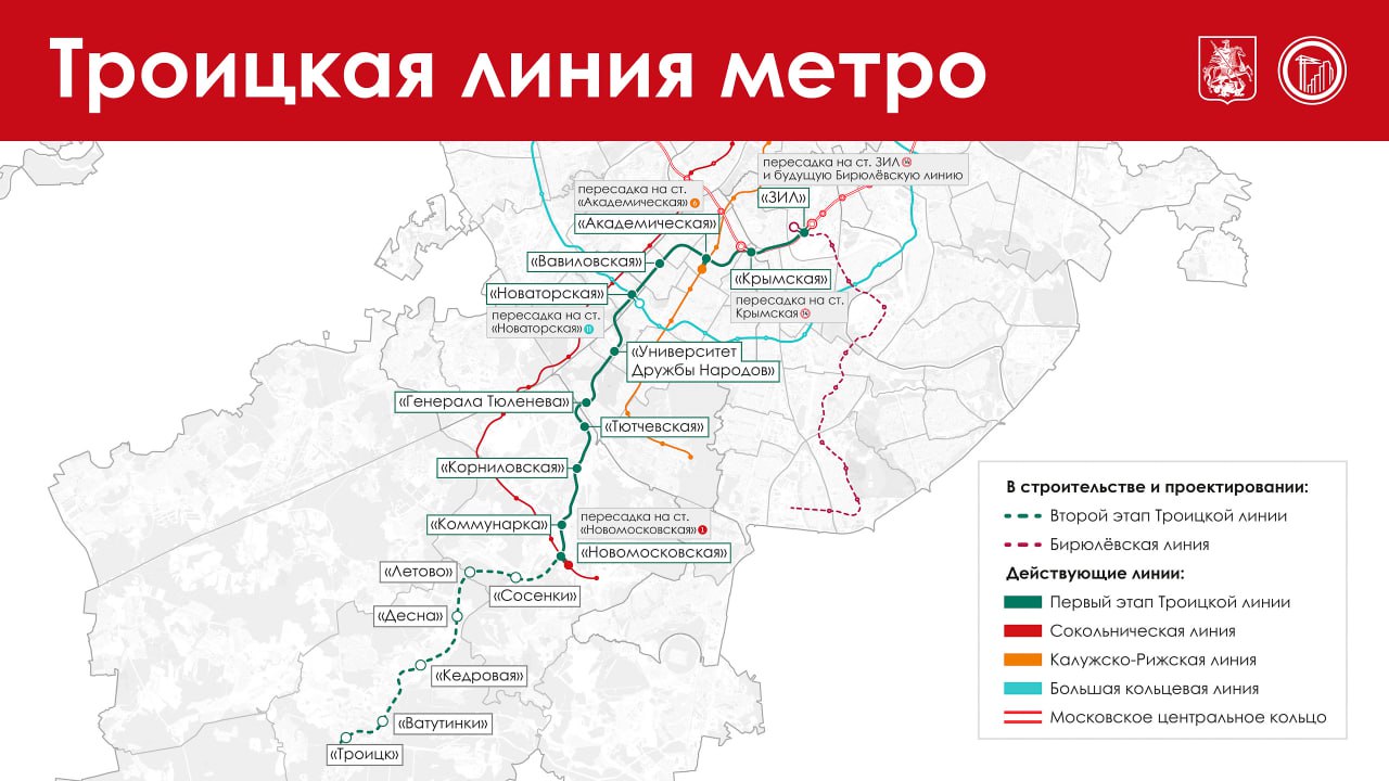 Запуск нового участка поможет жителям ТиНАО быстрее добираться до центра города. Также он разгрузит южные направления Сокольнической и Калужско-Рижской линий, близлежащие дороги. Завершить строительство планируем в 2029 году.