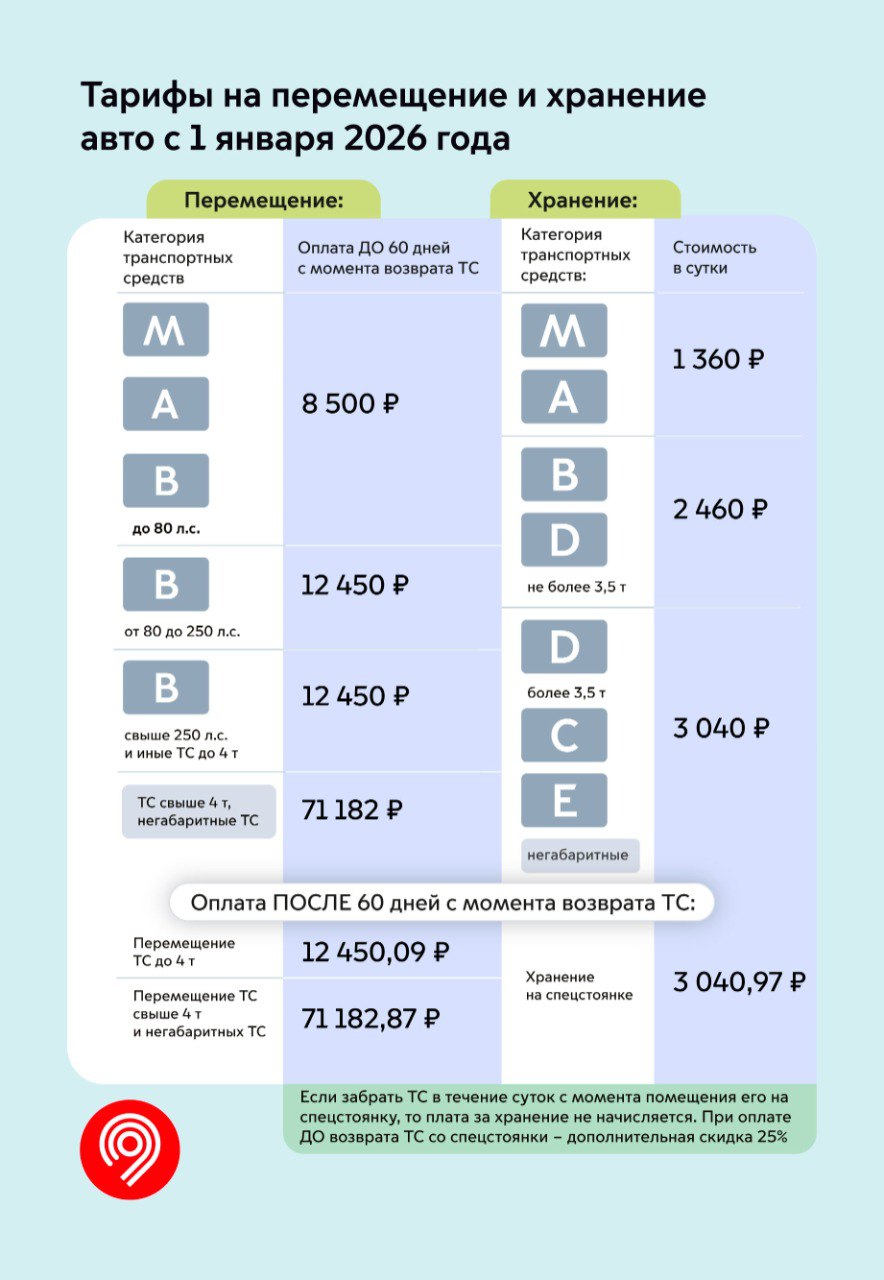 Также с 1 января 2026 года будет скорректирована стоимость перемещения и хранения транспортных средств. Она останется ниже фактических затрат города на эвакуацию.