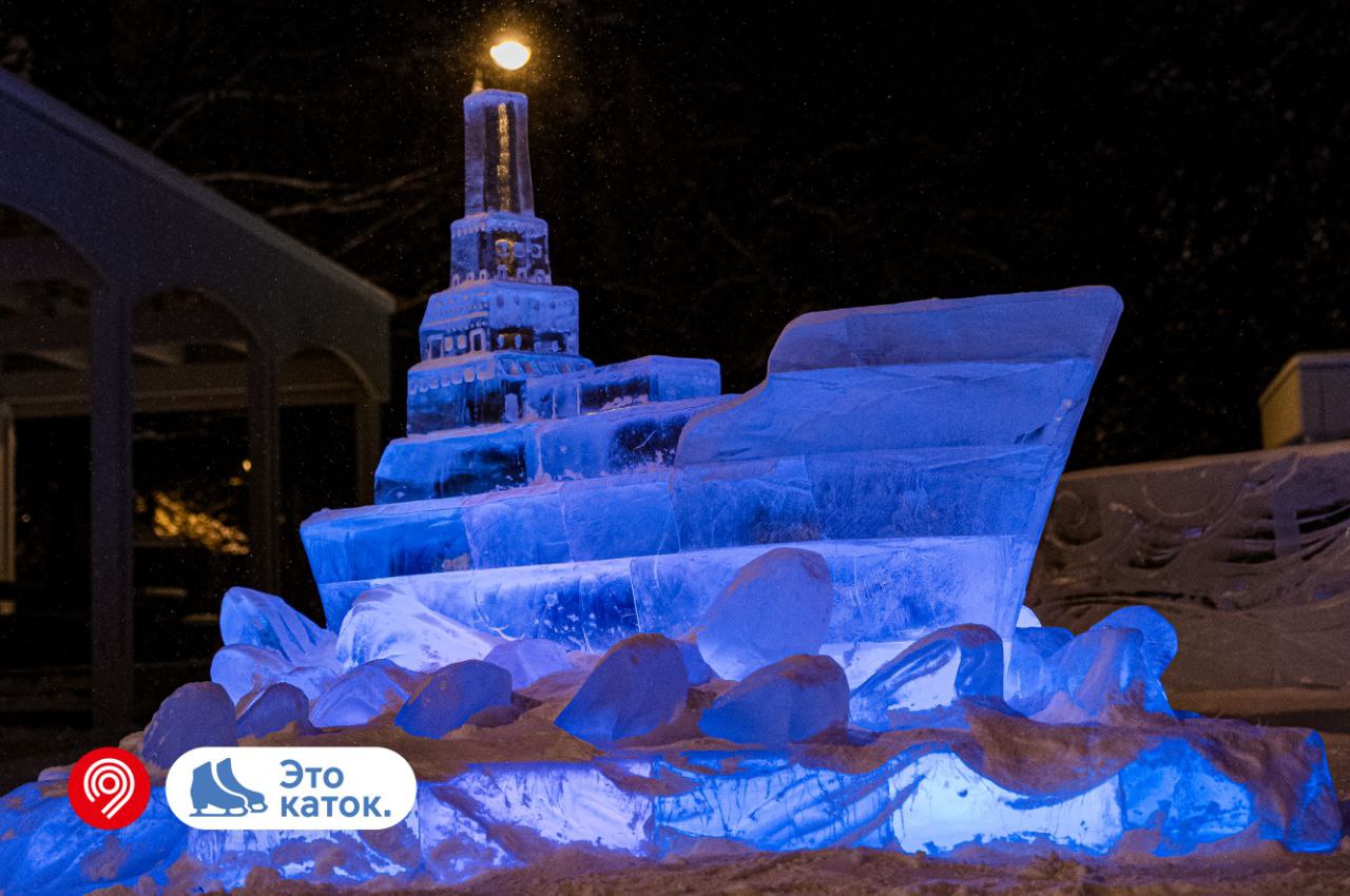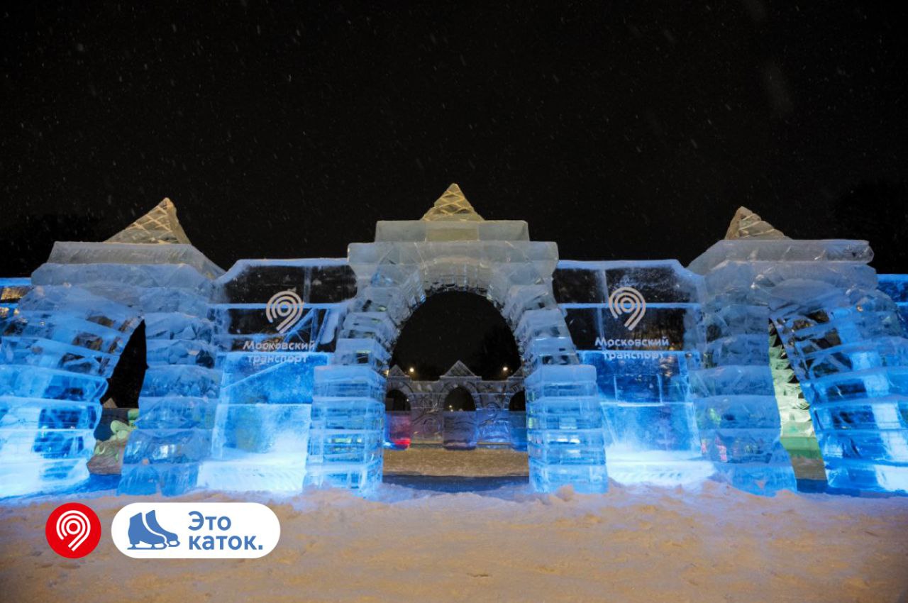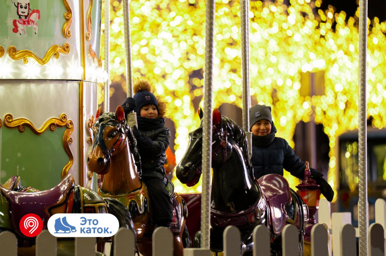 🔹 Масштабный каток с теплыми павильонами, пунктами проката коньков, кафе и зимней ярмаркой.