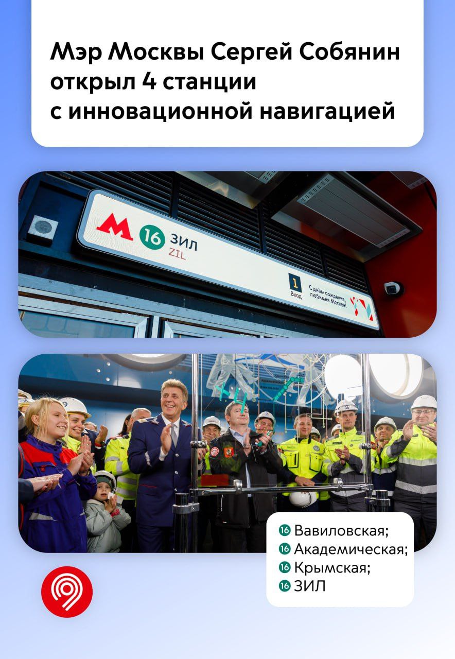 🔹 Оснастили цифровой навигацией 4 станции Троицкой линии на участке «Вавиловская — ЗИЛ», которые открыл Мэр Москвы Сергей Собянин. Эти станции стали первыми в метро, где с момента открытия внедрена цифровая навигация. Теперь можем быстрее сообщать вам актуальную информацию.